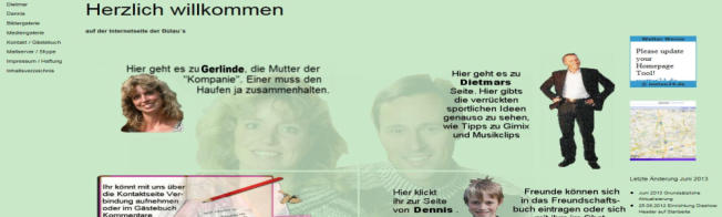 Herzlich Willkommenauf meiner Seite.Hier werde ich im Laufe der Zeit eine Sammlung von verschiedenen Websides ablegen. Die privaten Seiten werden für die Öffentlichkeit gesperrt sein. Alle anderen Versuche und Ideen, die ich evtl. entwickeln werde, können unten angeklickt werden.Viel Spass beim Stöbern.
